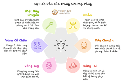 Trang sức mạ vàng mang đến giá trị thẩm mỹ và độ bền vượt trội. Sự đa dạng về mẫu mã và kiểu dáng đáp ứng nhu cầu của nhiều đối tượng khách hàng.